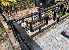 Приехав на участок вновь, мы принялись за установку ограждения, предварительно прополов место захоронения и демонтировав старые памятник с цветником.