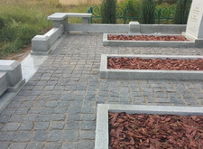 В качестве основного материала был выбран серый гранит, этот сорт гранита называется мансур. В качестве гранитной брусчатки выбран сорт черного гранита – габбро-диабаз, именно такой цвет имеет гранит, если поверхность шероховатая.