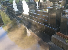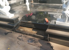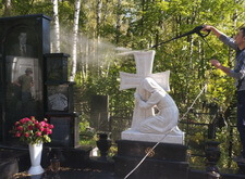 Первым делом мы промыли кёрхером место захоронения, делая основной упор на мраморные элементы.