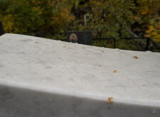 Далее мы перешли к обработке мраморных элементом специальным раствором, цель которого – защитить белый камень от проникающих извне частичек воды и влаги. Такое покрытие помогает, во-первых, оставить мраморные детали чистыми и светлыми, а, во-вторых, предотвращает преждевременное разрушение структуры камня.